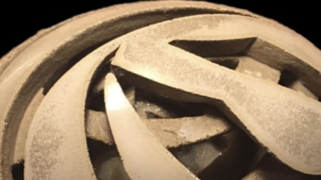 Concrete may be molded with Oozeq such that intricate three dimensional structures are formed. Coating mold surfaces with soap insures the concrete sets properly. Oozeq and soap rinse out, leaving the intricate concrete casting.